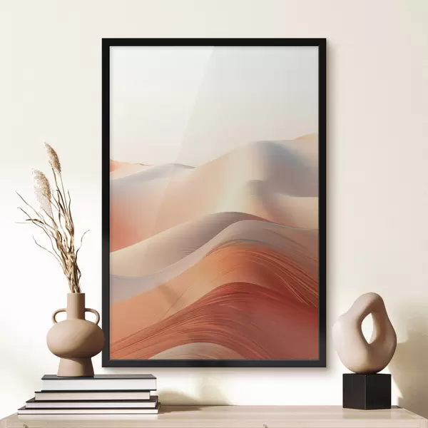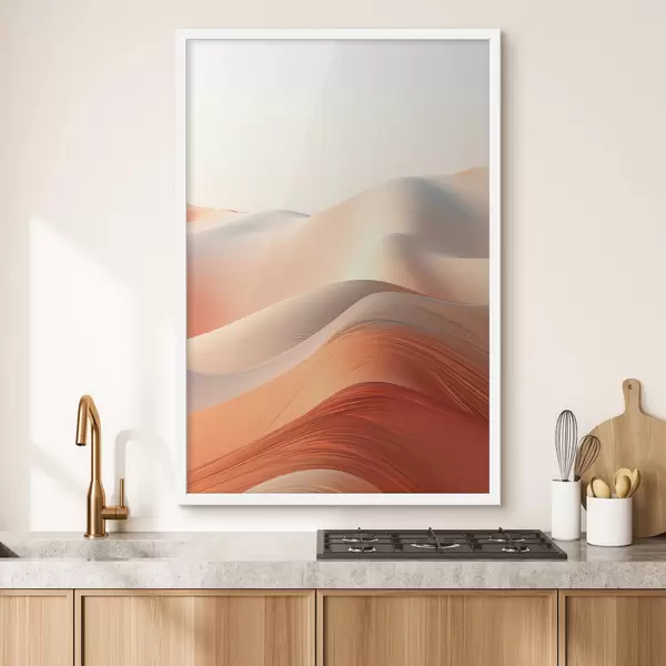 Poster Abstract woestijnlandschap met vloeiende zandduinen in warme oranje en witte tinten Nr f47031