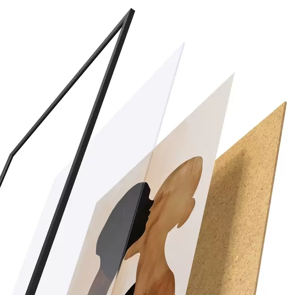 De poster bestaat uit een frame, plexiglas, geprinte afbeelding en spaanplaat achterkant. De poster kan meteen aan de muur worden gehangen dankzij de bevestigingen op de achterkant.