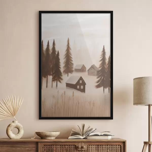 Poster Huizen in het bos f47077