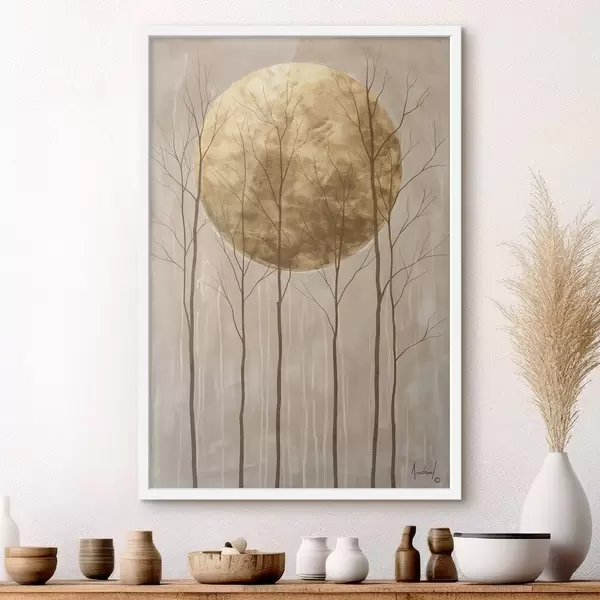 De poster bestaat uit een frame, plexiglas, geprinte afbeelding en spaanplaat achterkant. De poster kan meteen aan de muur worden gehangen dankzij de bevestigingen op de achterkant.