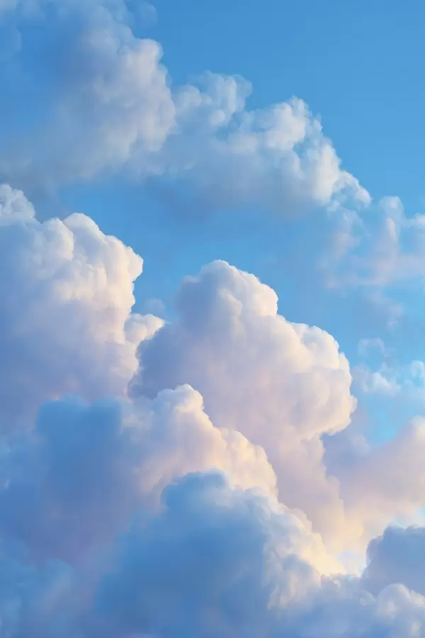 Poster Volumineuze wolken in een zacht blauw en roze kleurenpalet in fotorealistische digitale grafische stijl Nr f47088