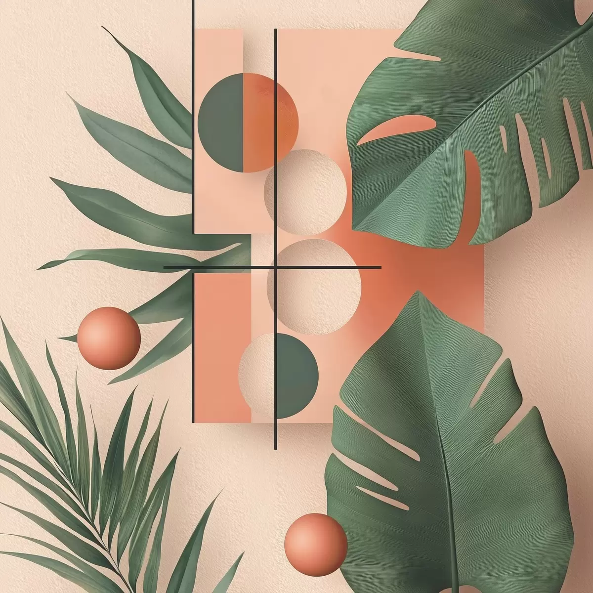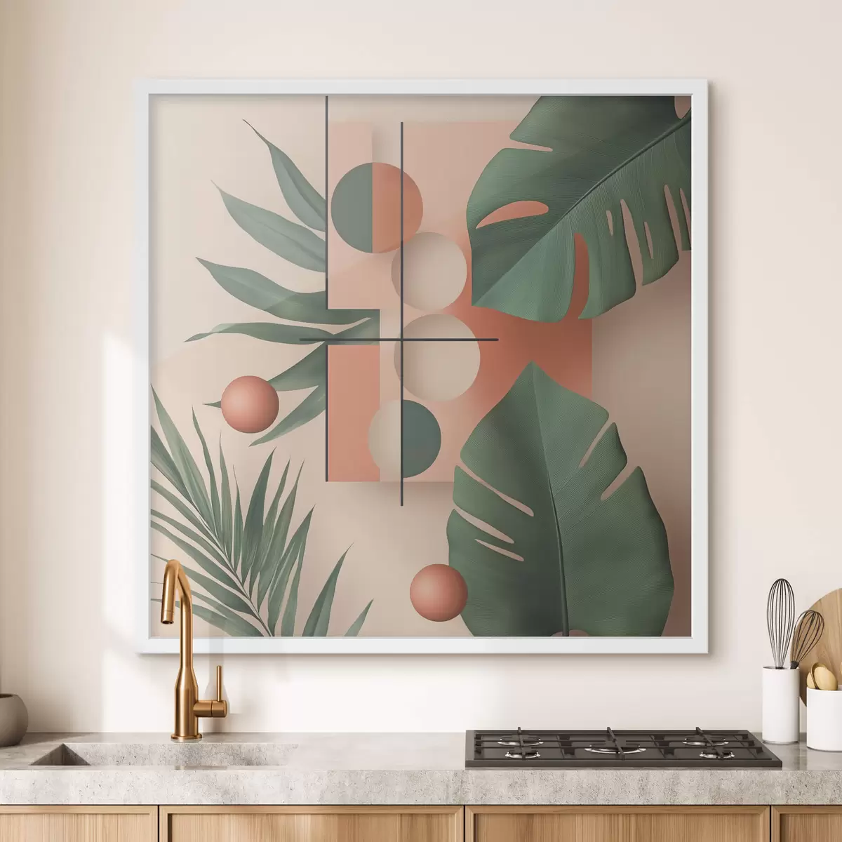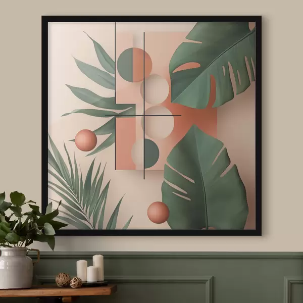 Poster Abstractie met grote tropische bladeren Nr f47099
