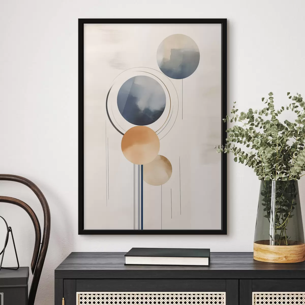 De poster bestaat uit een frame, plexiglas, geprinte afbeelding en spaanplaat achterkant. De poster kan meteen aan de muur worden gehangen dankzij de bevestigingen op de achterkant.