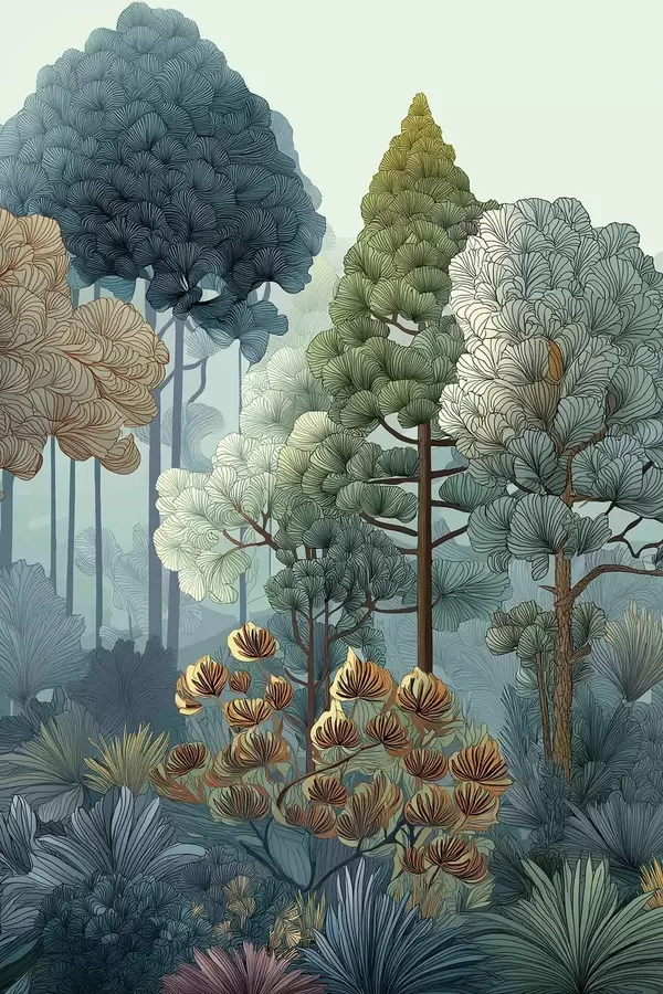 Poster Diversiteit van planten in het bos f47106