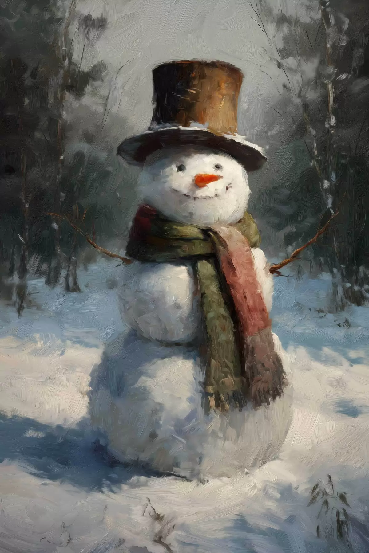 Poster sneeuwpop in de stijl van een olieverfschilderij f47116