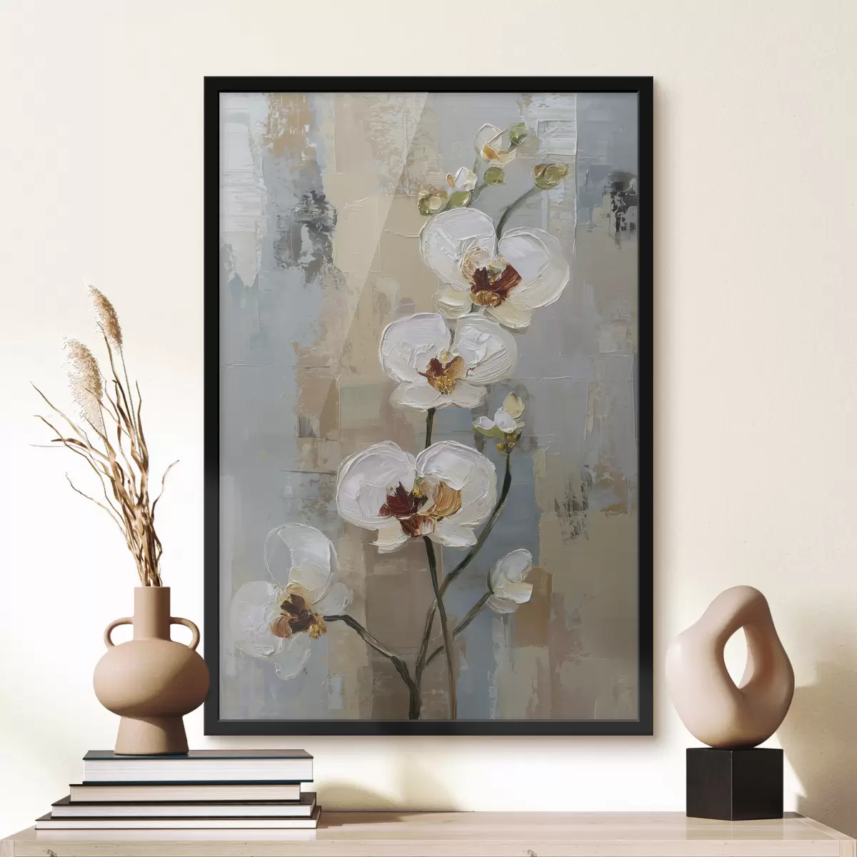 Poster witte orchideebloemen in de stijl van een olieverfschilderij Nr f47131