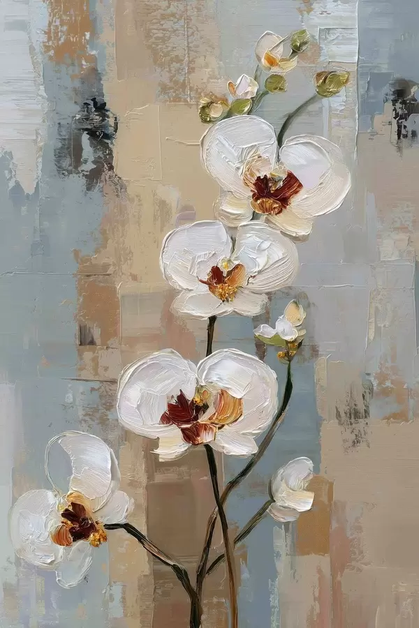 Poster witte orchideebloemen in de stijl van een olieverfschilderij Nr f47131