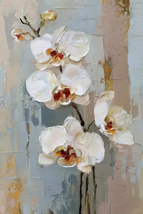 Poster witte orchideebloemen in de stijl van een olieverfschilderij Nr f47132