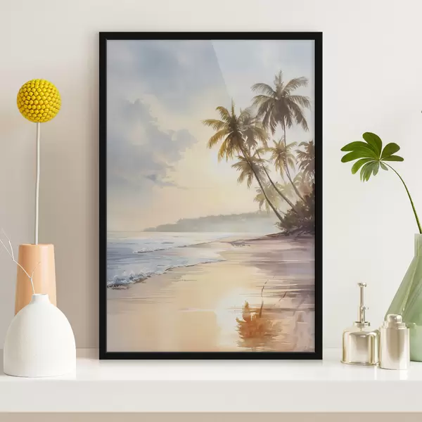 Poster zonsondergangstrand op een eiland in aquarelstijl Nr f47135