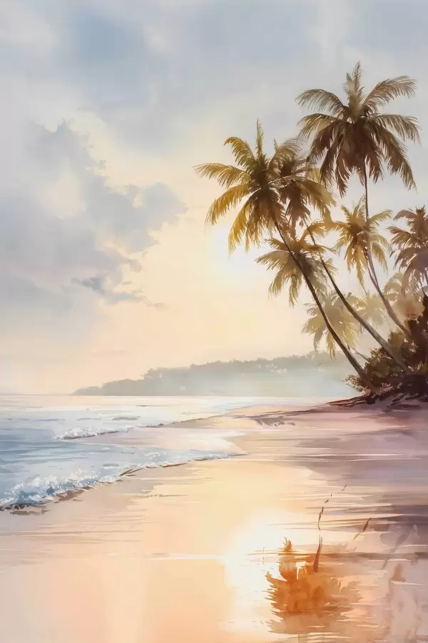 Poster zonsondergangstrand op een eiland in aquarelstijl Nr f47135