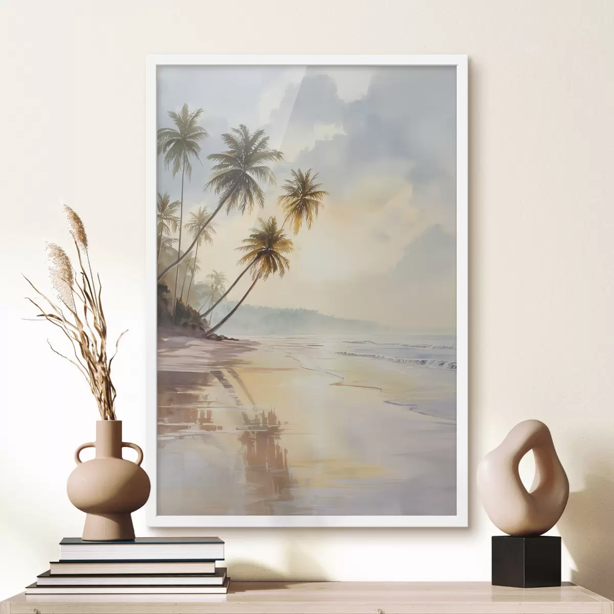 Poster zonsondergangstrand op een eiland in aquarelstijl Nr f47136