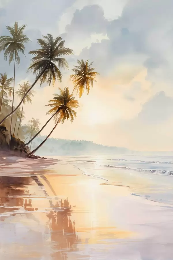 Poster zonsondergangstrand op een eiland in aquarelstijl Nr f47136