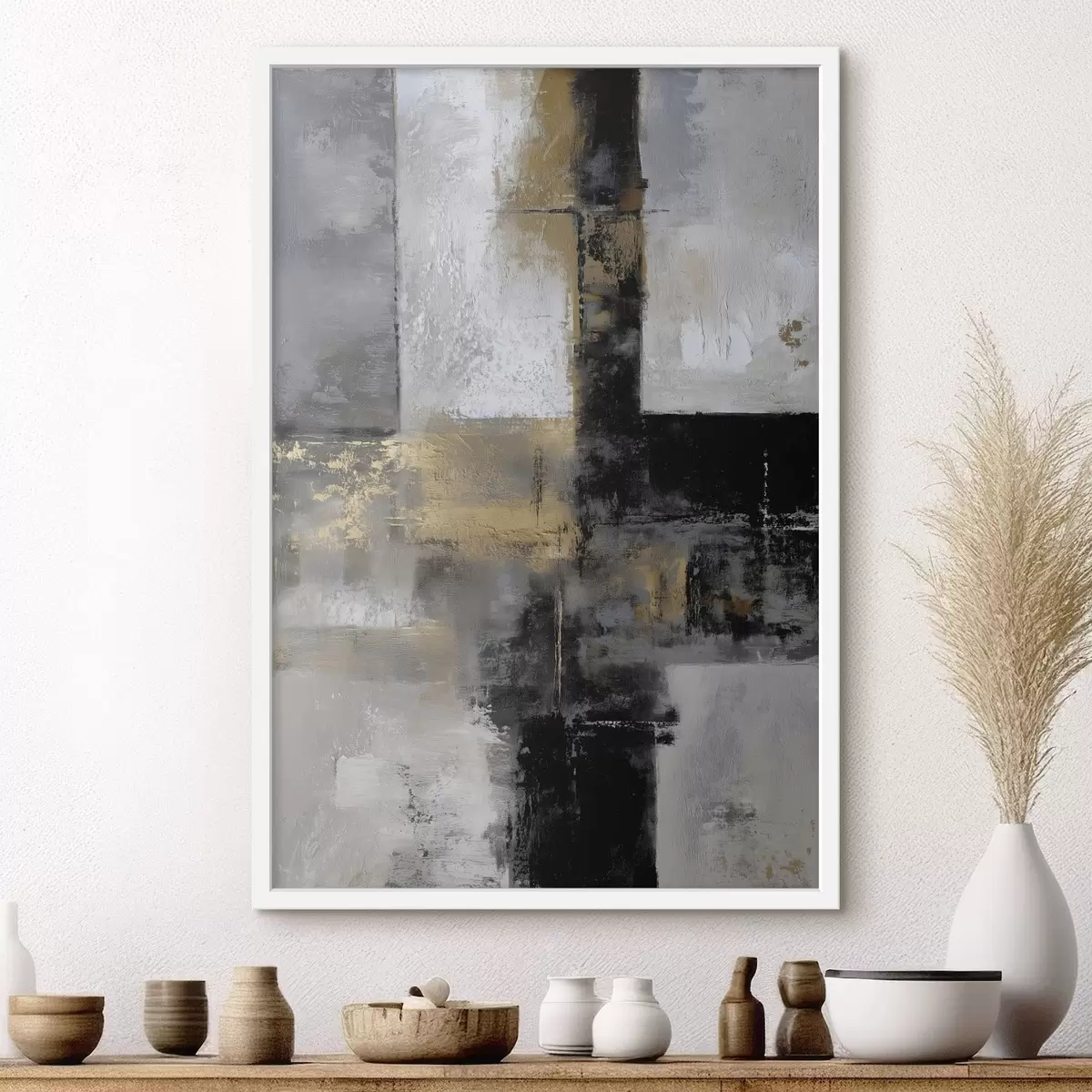 Poster hedendaagse textuurabstractie in zwart-, grijs- en wittinten Nr f47140