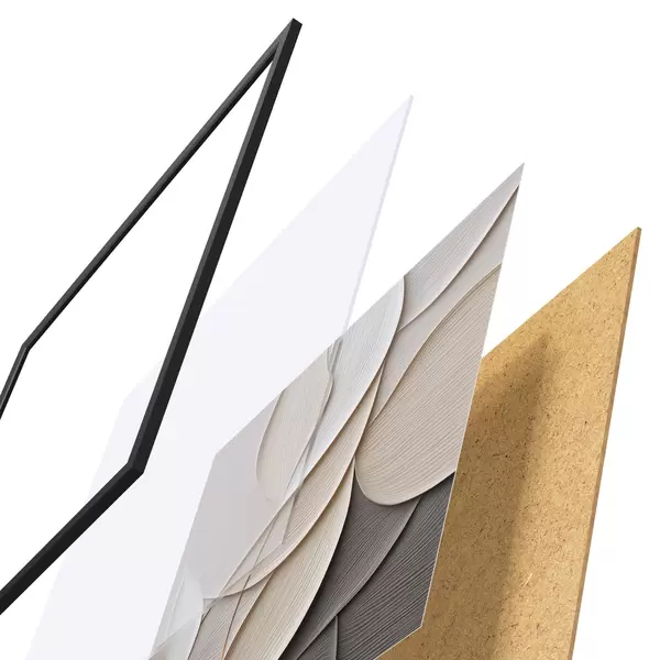 De poster bestaat uit een frame, plexiglas, geprinte afbeelding en spaanplaat achterkant. De poster kan meteen aan de muur worden gehangen dankzij de bevestigingen op de achterkant.