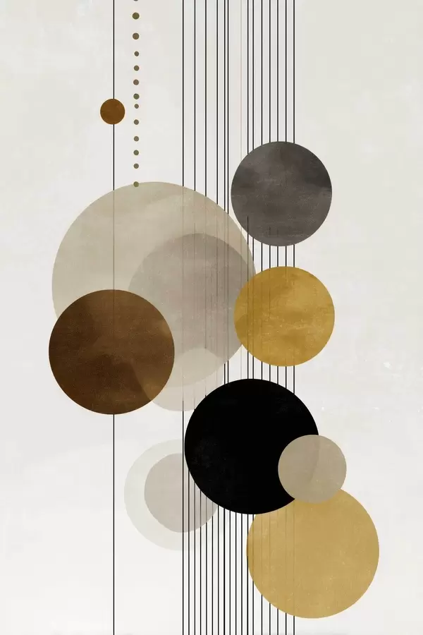 Poster abstractie met cirkels en lijnen in warme kleuren Nr f47237