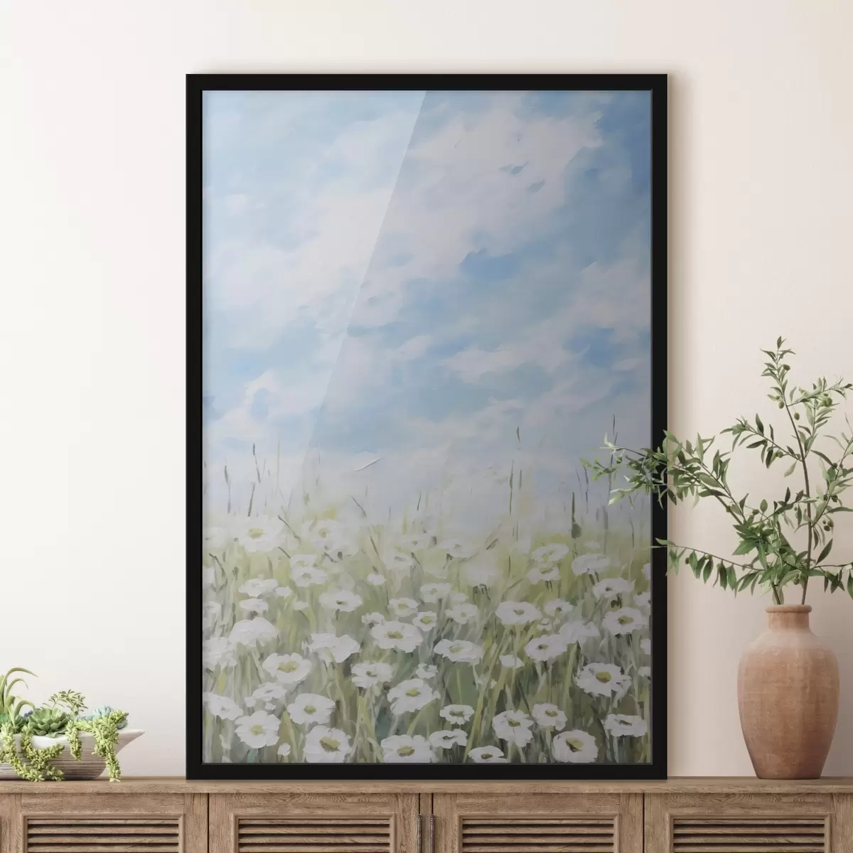 Poster Veld met madeliefjes imitatie schilderij Nr f47246
