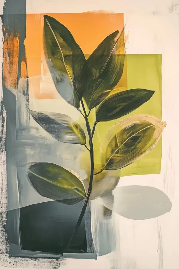 Poster Een tak met bladeren op een abstracte achtergrond Nr f47249