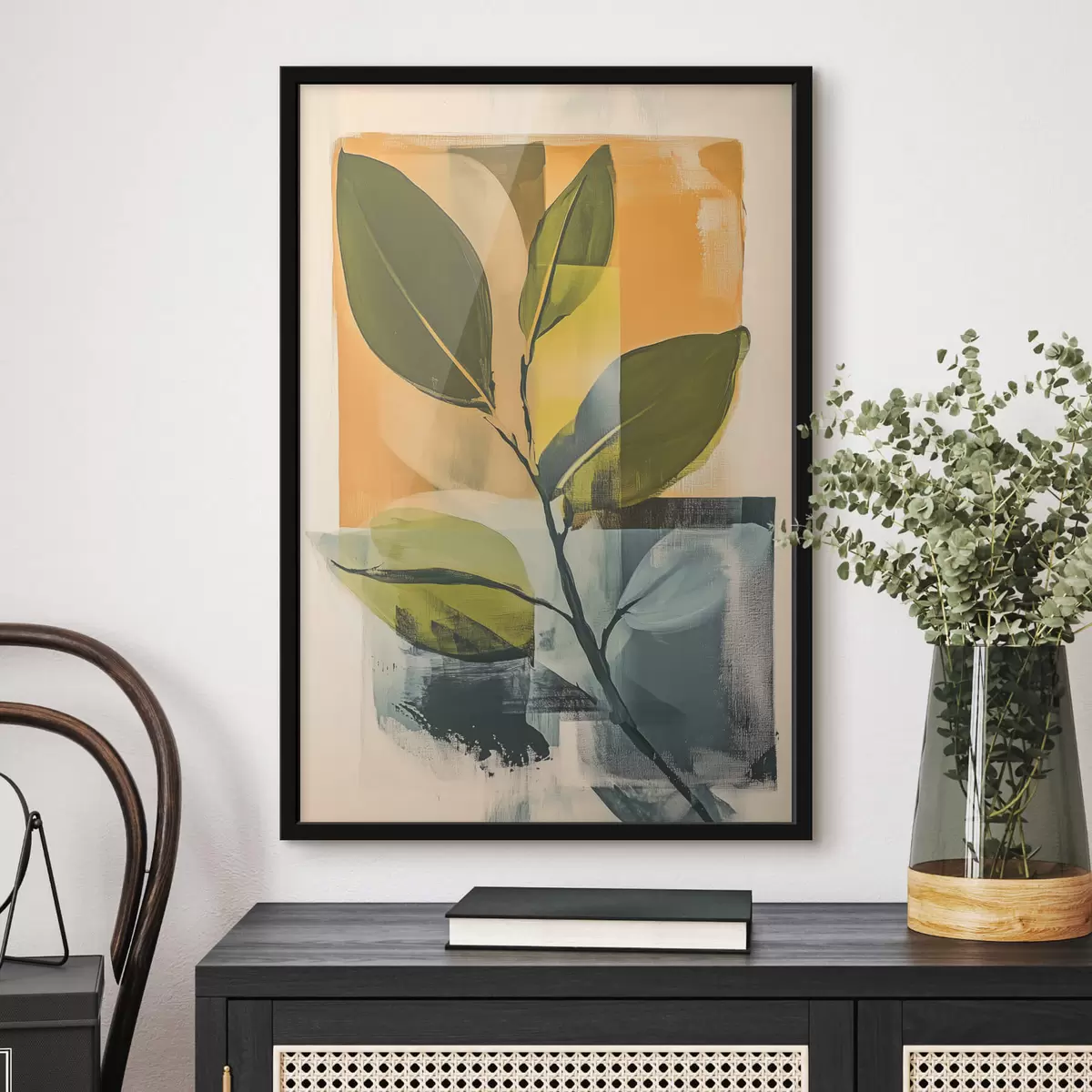 Poster Een tak met bladeren op een abstracte achtergrond Nr f47250