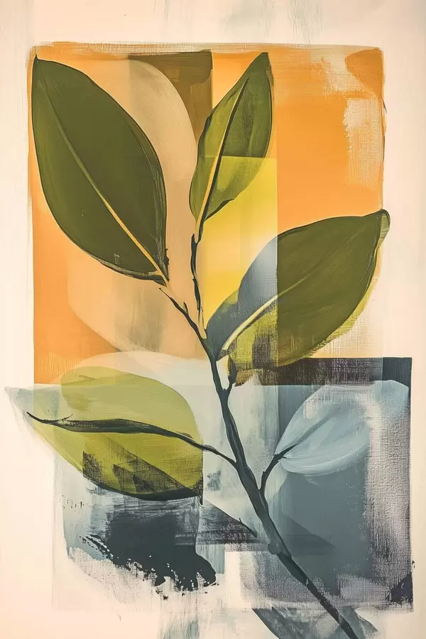 Poster Een tak met bladeren op een abstracte achtergrond Nr f47250