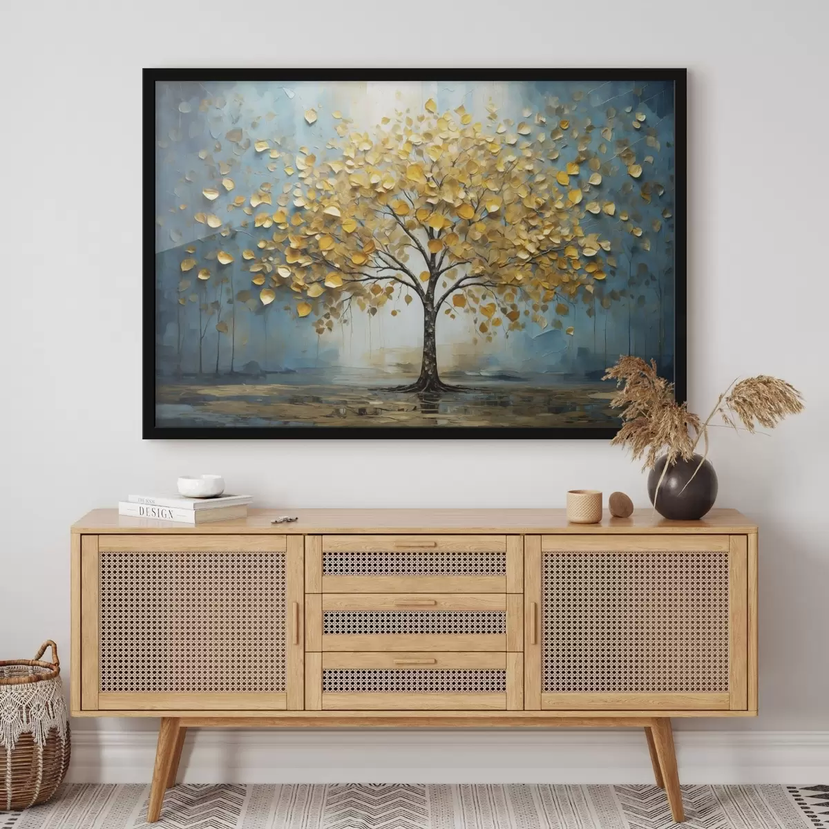 Poster Boom met gele bladeren tegen blauwe achtergrond f47256