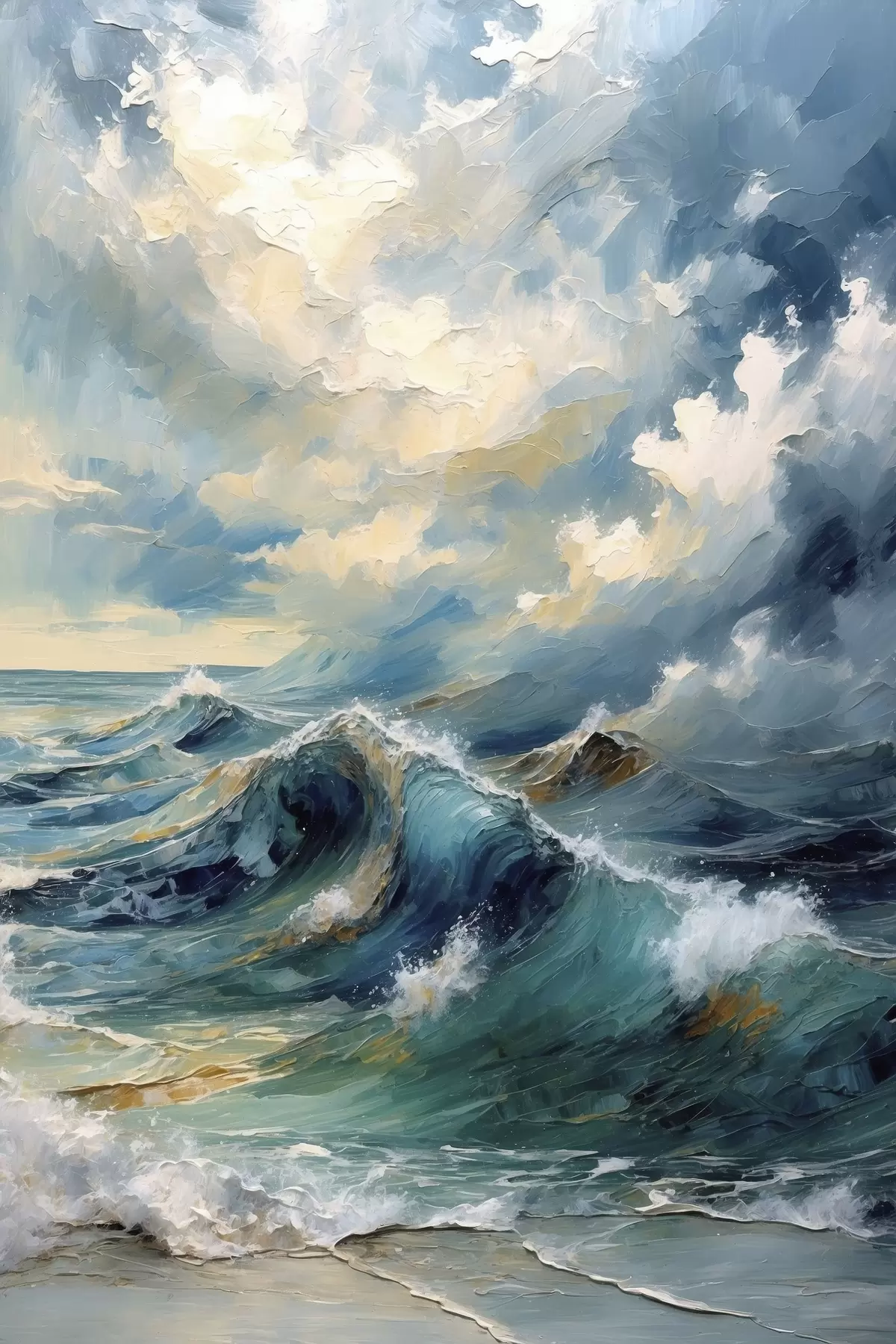 Poster Zeegolven onder een heldere bewolkte hemel f47275