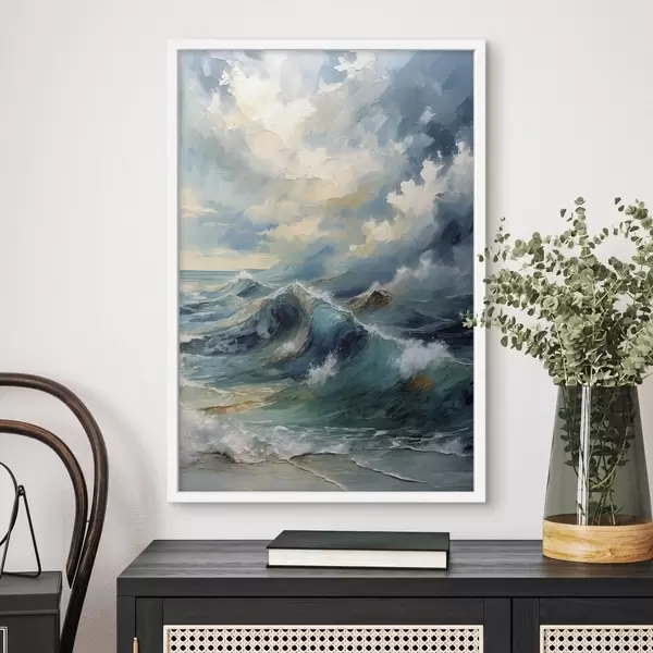 Poster Zeegolven onder een heldere bewolkte hemel Nr f47275