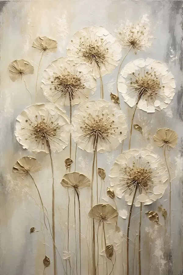 Poster Hoge crèmekleurige bloemen op een lichte achtergrond Nr f47282