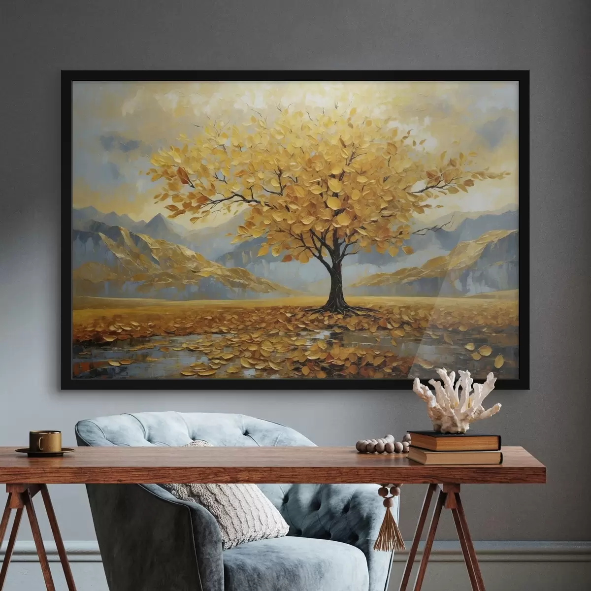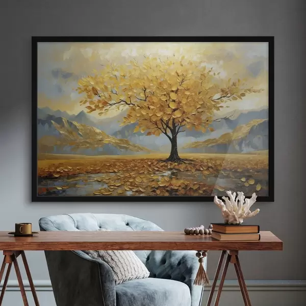 Poster Boom met gele bladeren in een berglandschap Nr f47285