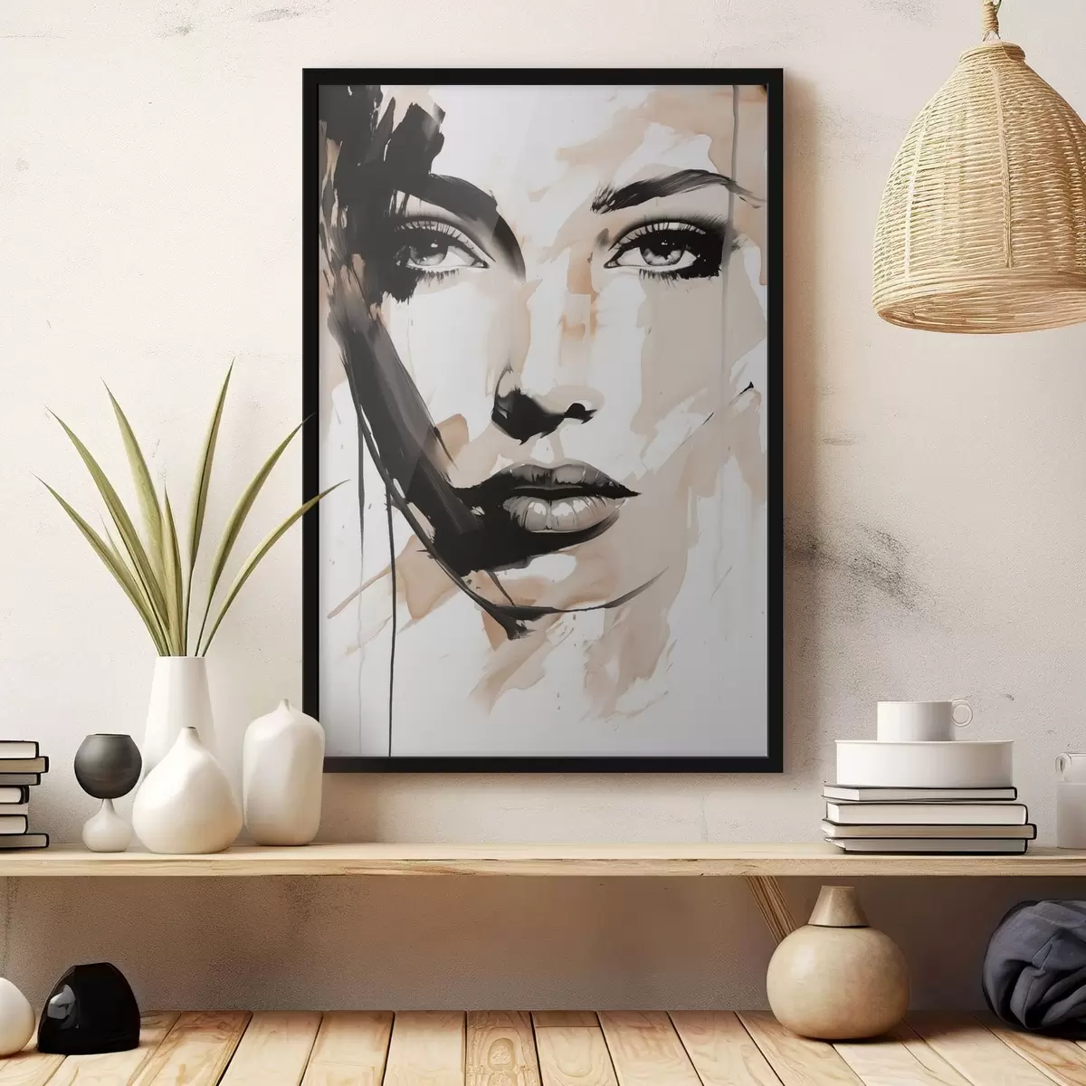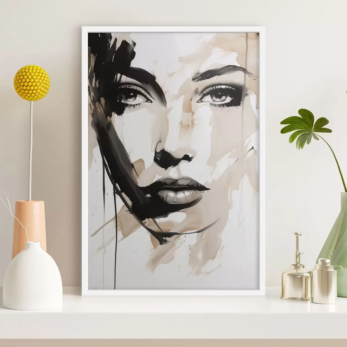 Poster Abstract vrouwelijk portret in lichte tinten Nr f47290