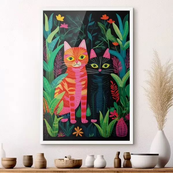 Poster Twee gestileerde katten tussen levendige planten Nr f47298
