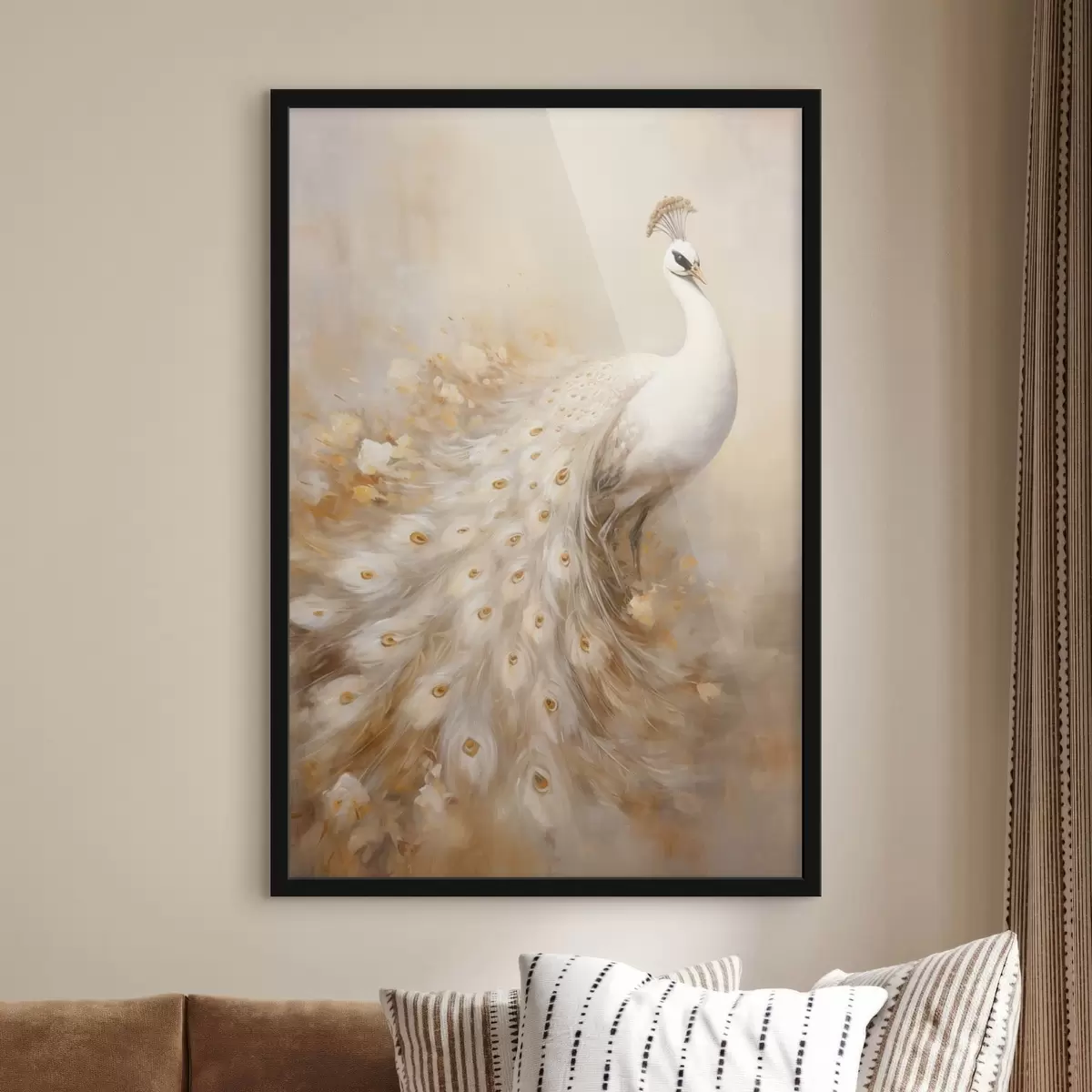 Poster Lichte vogel met lange staart in luchtige tinten Nr f47309