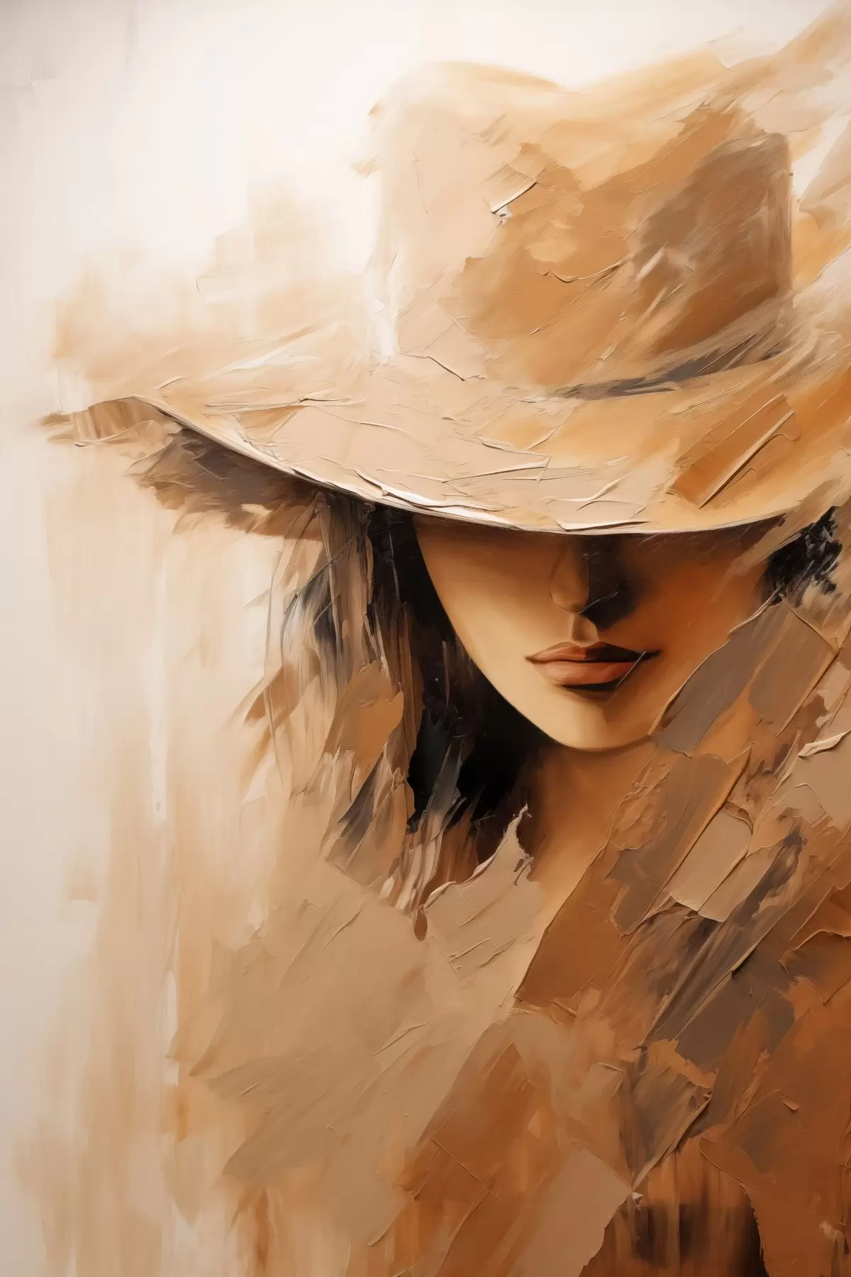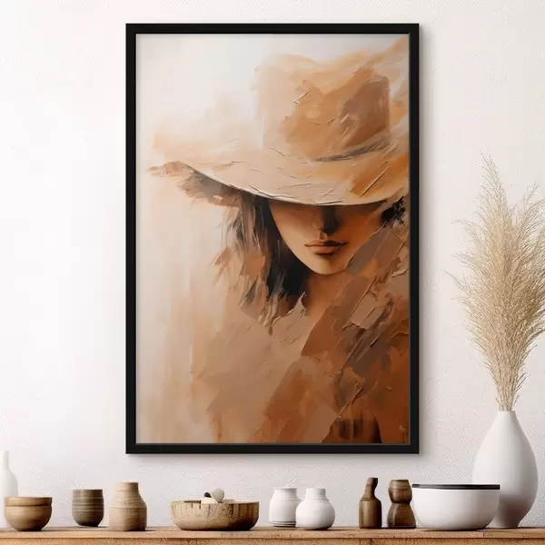 Poster Vrouw met hoed in warme, gestructureerde penseelstreken Nr f47315