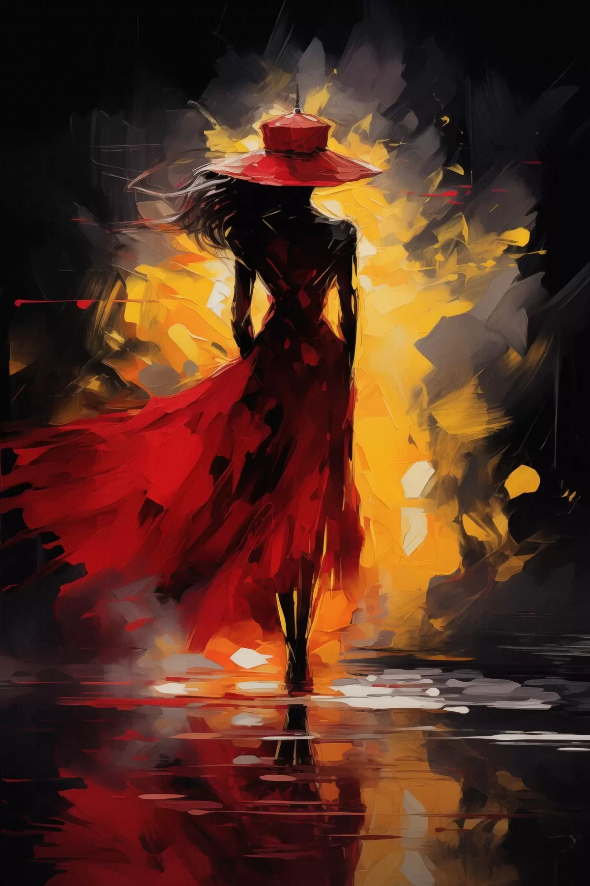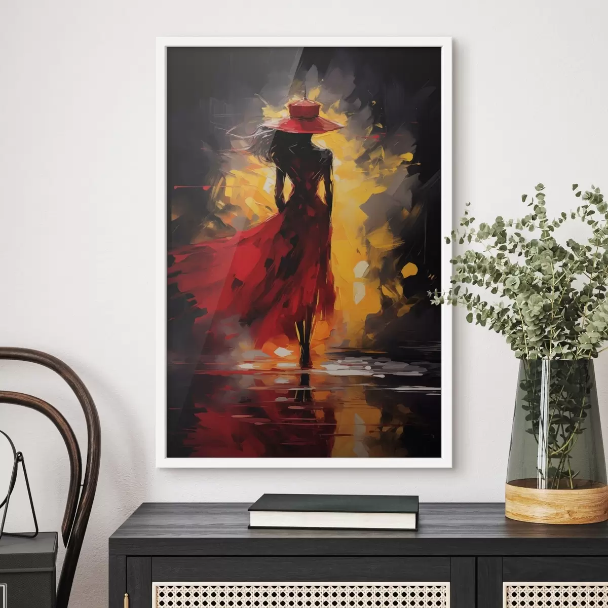 Poster Figuur in rood in fel licht Nr f47318