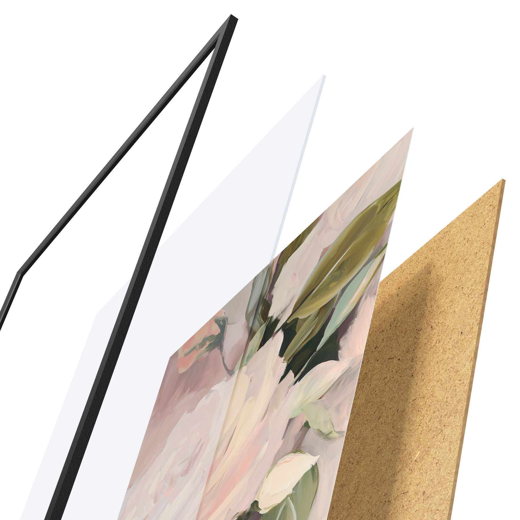 De poster bestaat uit een frame, plexiglas, geprinte afbeelding en spaanplaat achterkant. De poster kan meteen aan de muur worden gehangen dankzij de bevestigingen op de achterkant.