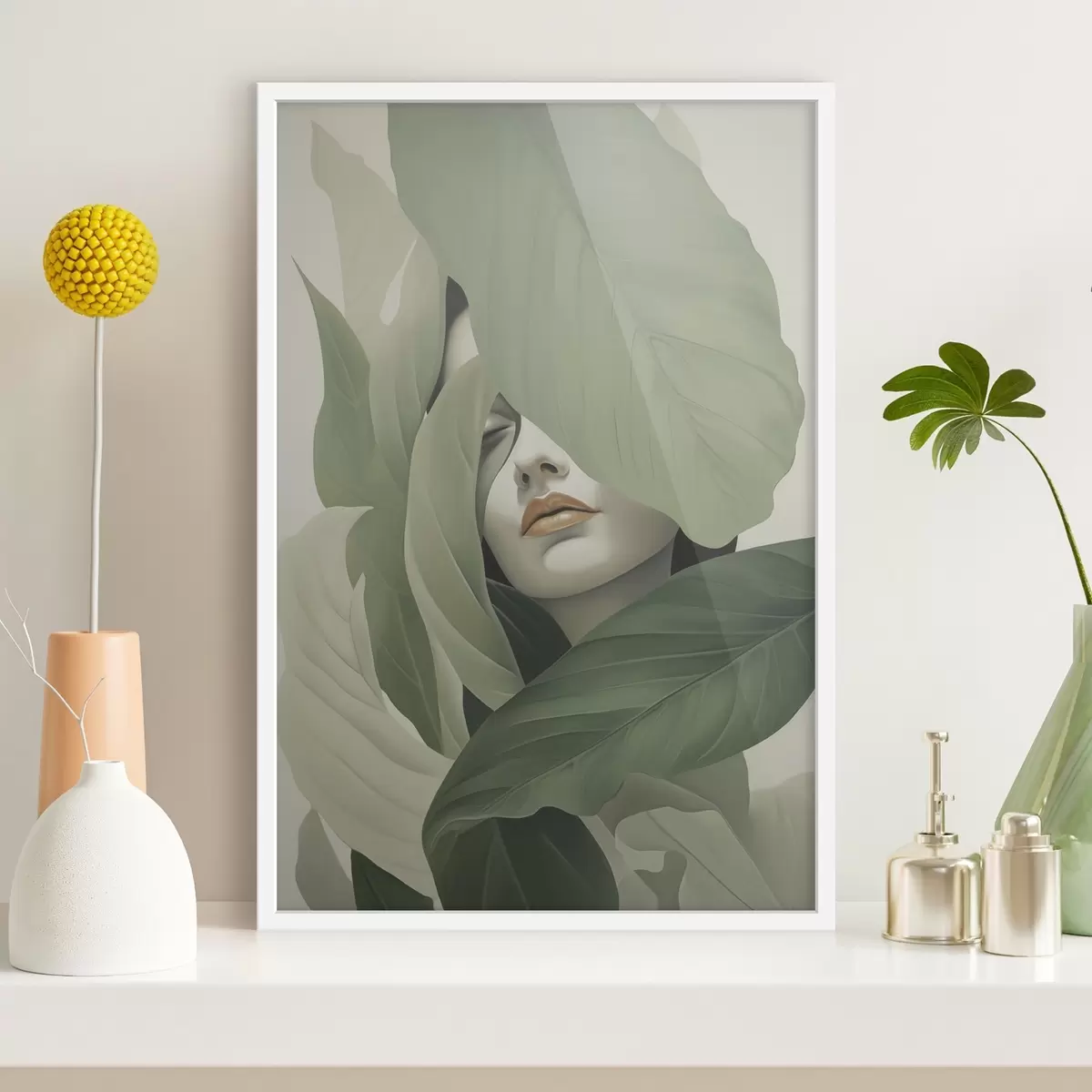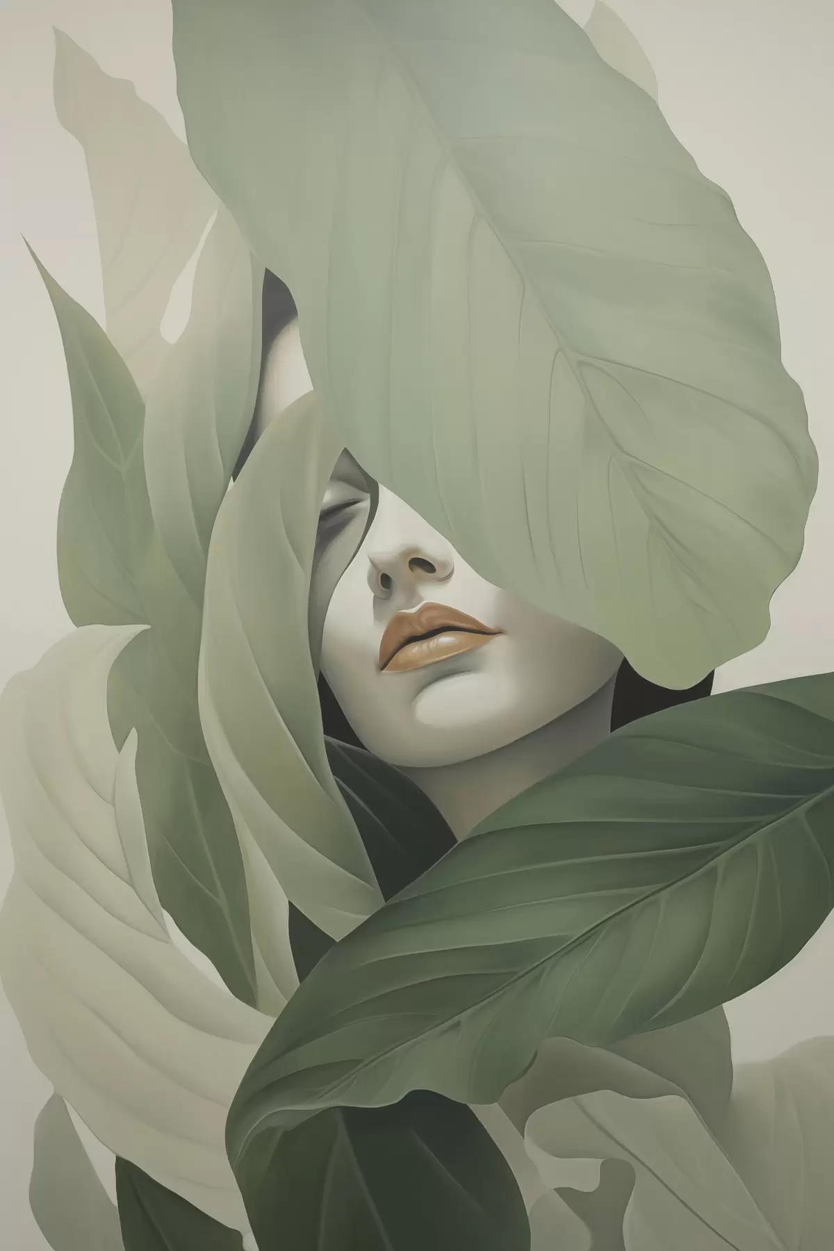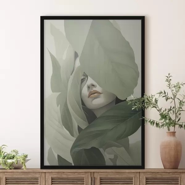 Poster Surrealistisch portret van een meisje in gebladerte Nr f47332