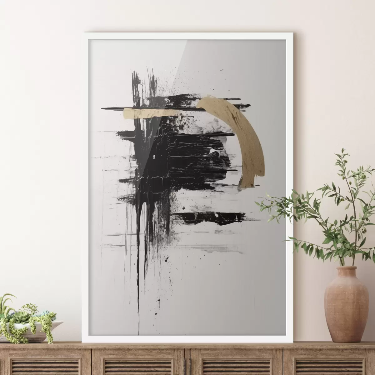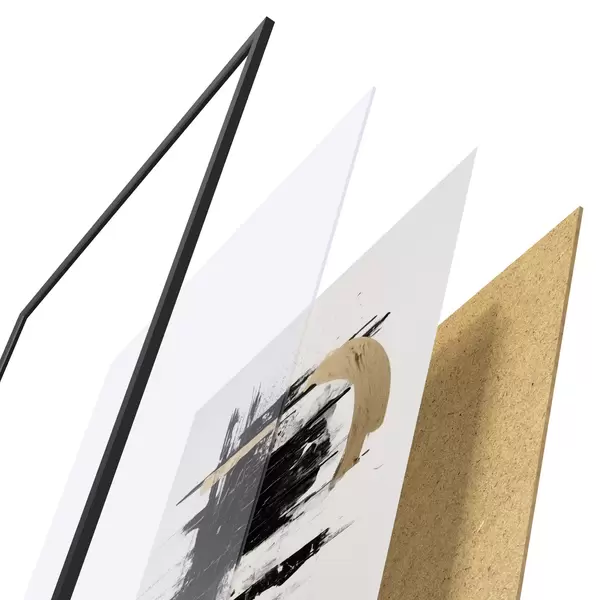 De poster bestaat uit een frame, plexiglas, geprinte afbeelding en spaanplaat achterkant. De poster kan meteen aan de muur worden gehangen dankzij de bevestigingen op de achterkant.