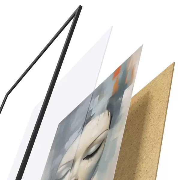 De poster bestaat uit een frame, plexiglas, geprinte afbeelding en spaanplaat achterkant. De poster kan meteen aan de muur worden gehangen dankzij de bevestigingen op de achterkant.