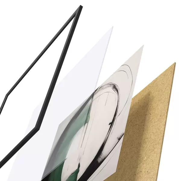 De poster bestaat uit een frame, plexiglas, geprinte afbeelding en spaanplaat achterkant. De poster kan meteen aan de muur worden gehangen dankzij de bevestigingen op de achterkant.