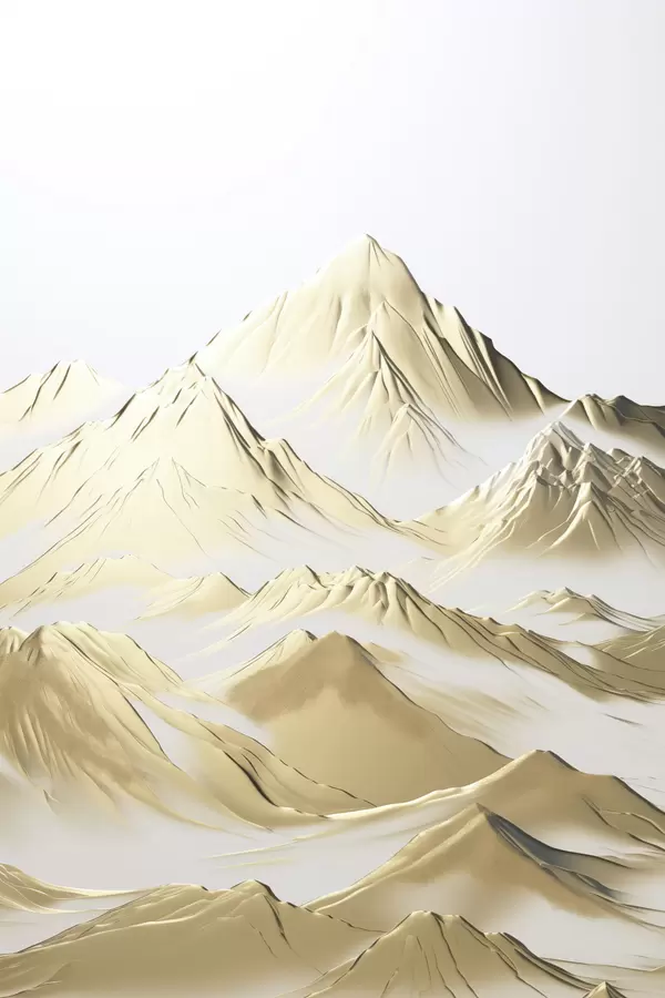 Poster Een landschap van gele, met sneeuw bedekte bergen met scherpe toppen en diepe valleien onder een heldere hemel. Nr f47421