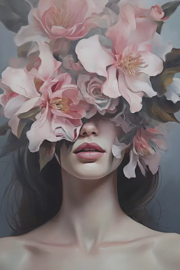 Poster Surrealistisch portret van een vrouw met bloemen Nr f47489