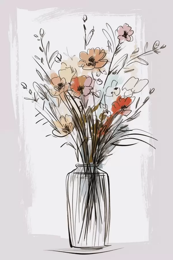Poster Bloemen in een vaas, imitatie van een tekening Nr f47495