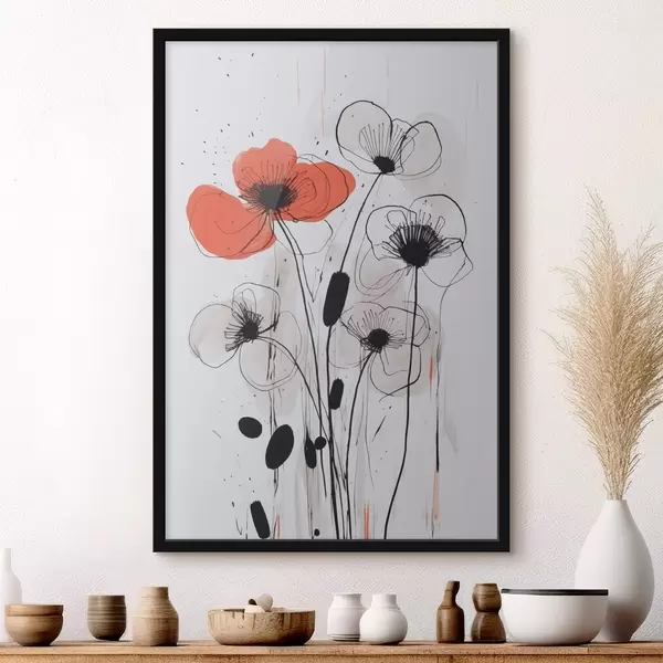 Poster Abstracte bloemen imitatie van een tekening f47500