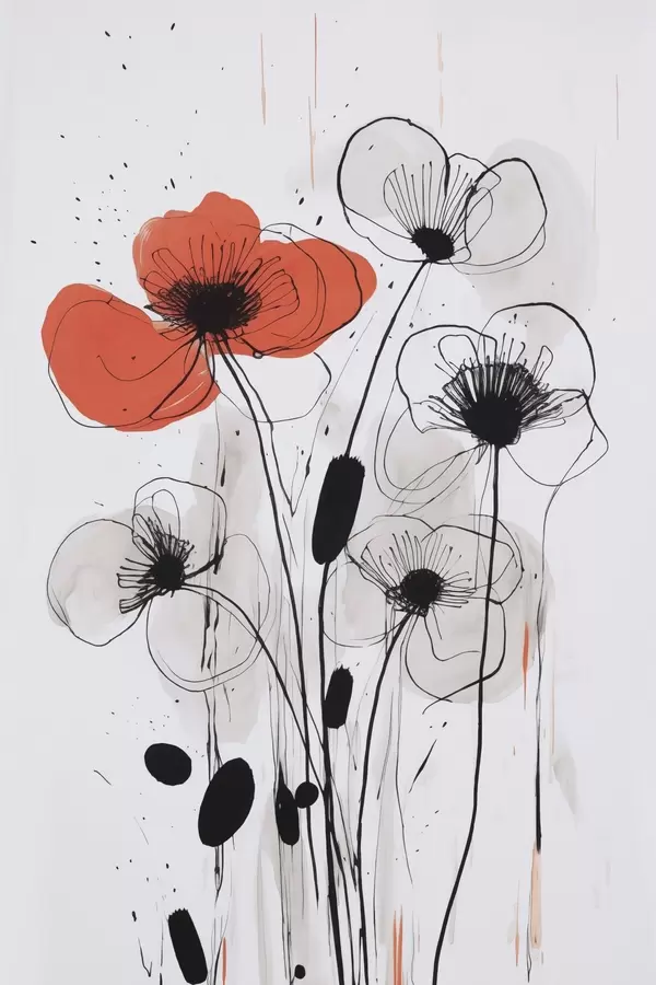 Poster Abstracte bloemen imitatie van een tekening Nr f47500