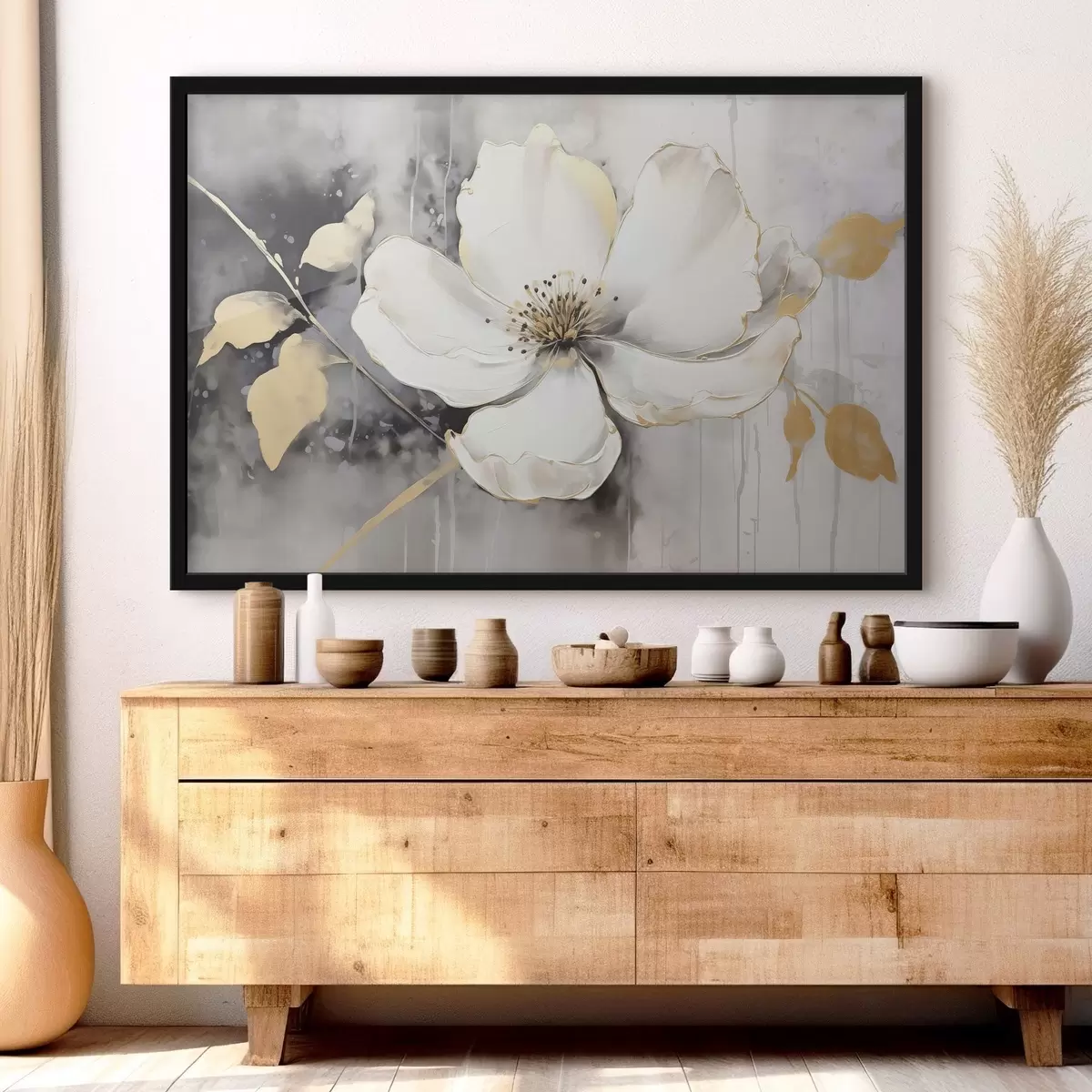 Je kunt het schilderij ophangen aan schroeven. Hiervoor leveren we bevestigingen bij onze foto's, zodat je de foto gemakkelijk kunt ophangen.
