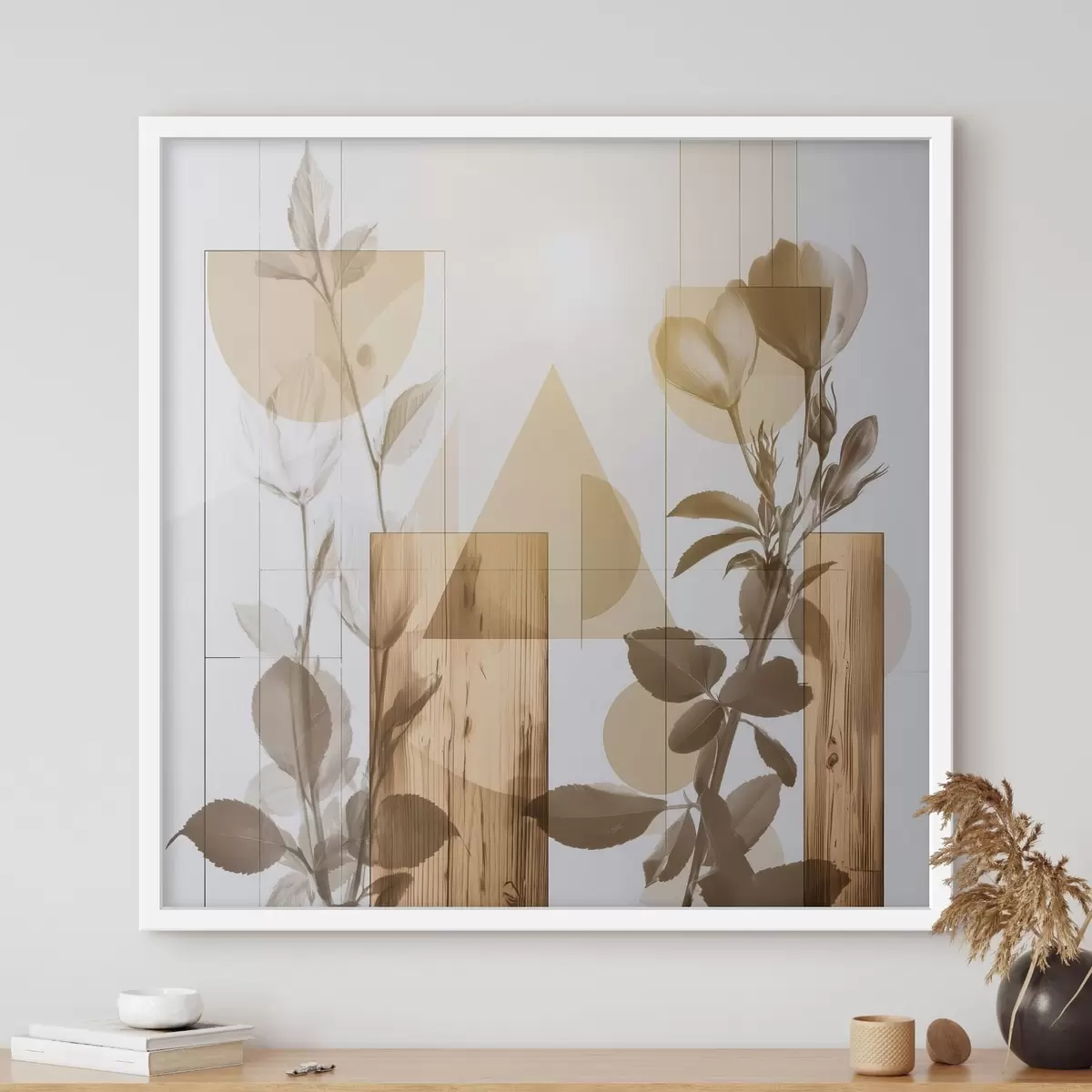 Poster Abstractie met bloemen en geometrische vormen Nr f47655