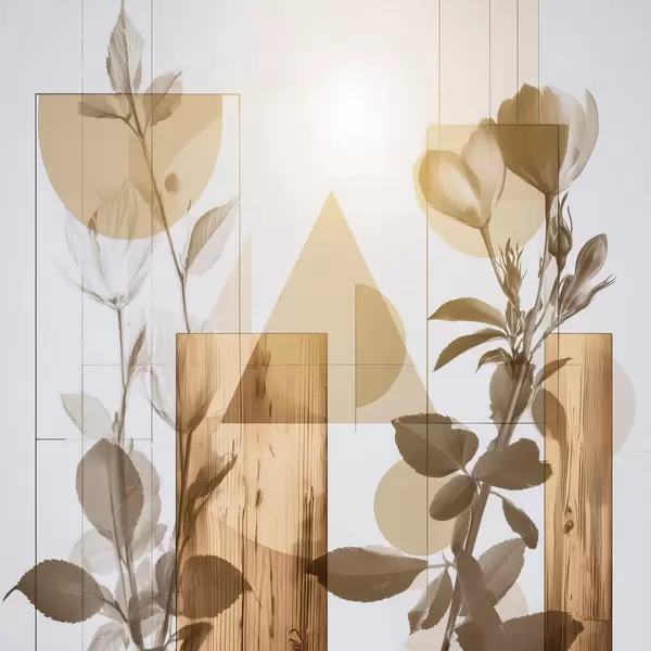 Poster Abstractie met bloemen en geometrische vormen Nr f47655