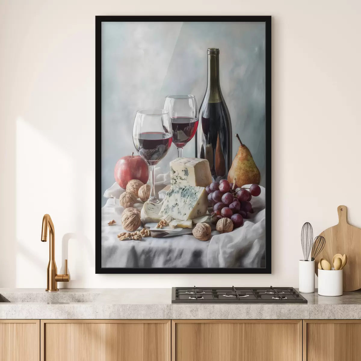 Poster stilleven met wijn, kaas en noten Nr f47686