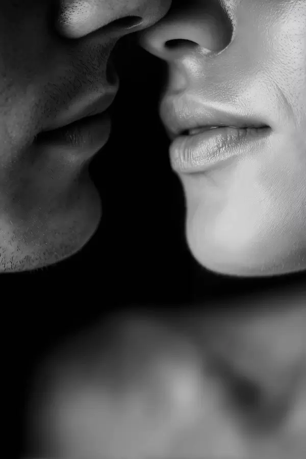 Poster zwarte en witte lippen van een man en een vrouw Nr f47687