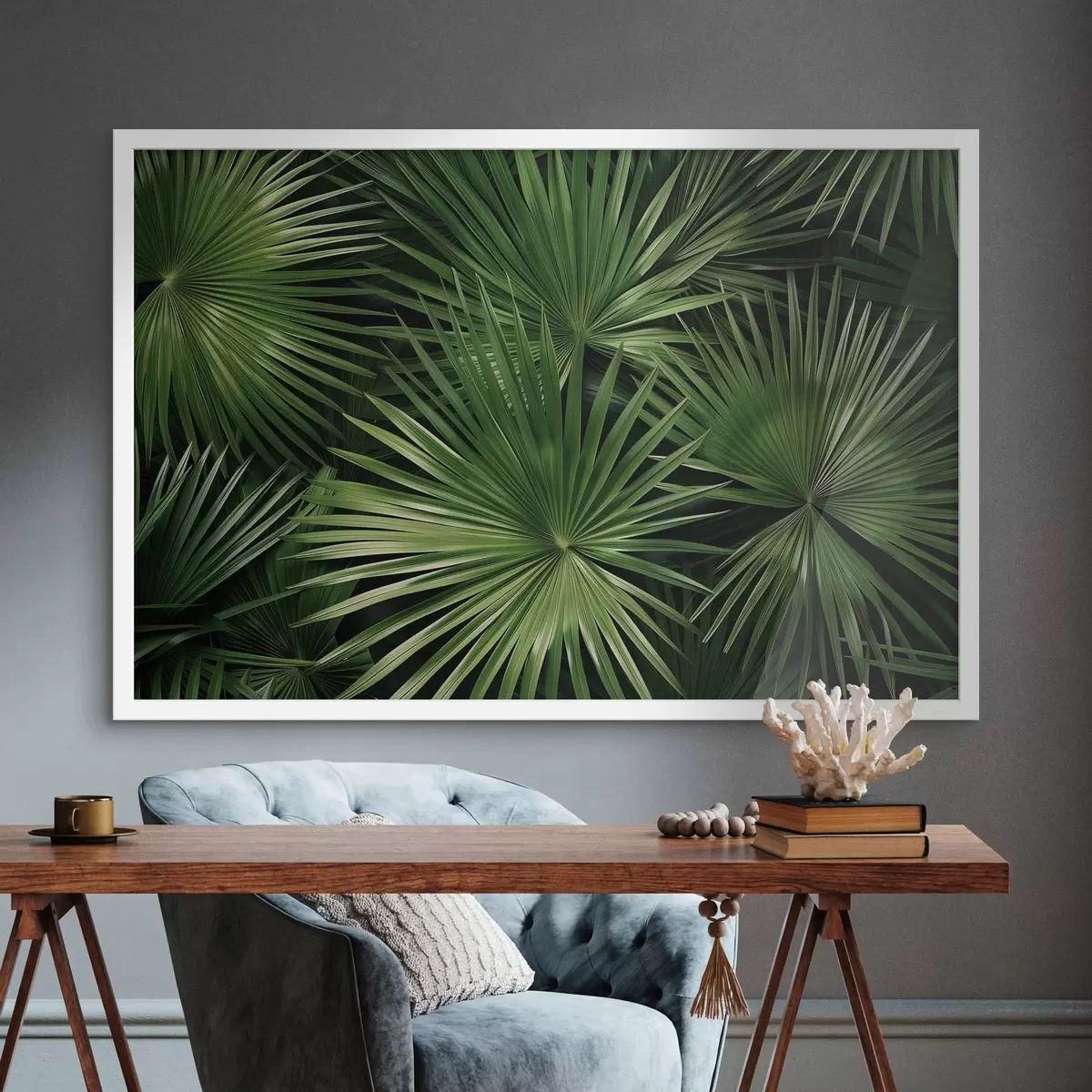 Je kunt het schilderij ophangen aan schroeven. Hiervoor leveren we bevestigingen bij onze foto's, zodat je de foto gemakkelijk kunt ophangen.