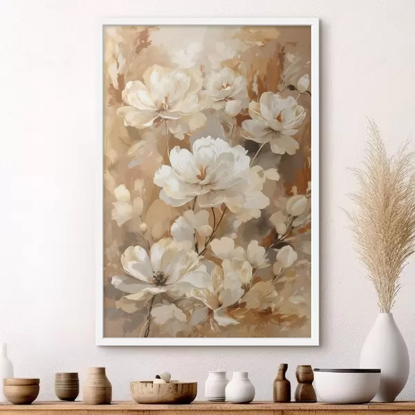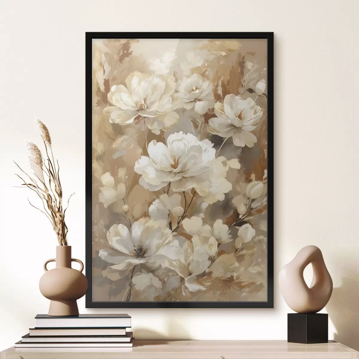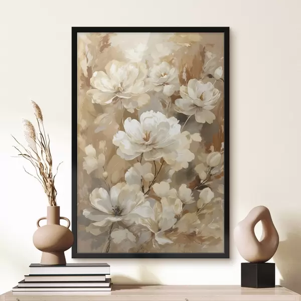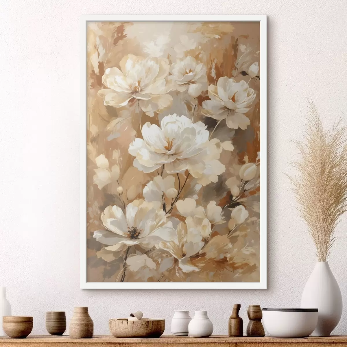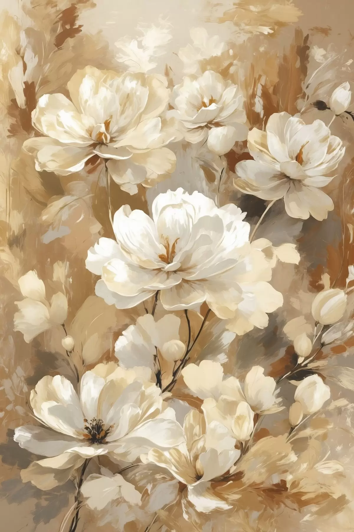 Poster Grote lichte bloemen geschilderd met brede penseelstreken Nr f47761